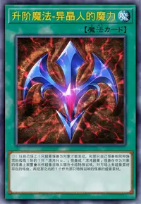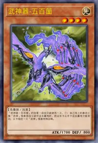发动后这张卡变成装备卡,给自己场上1只4阶的超量怪兽装备。装备怪兽的攻击力上升那只怪兽的超量素材数量×300的数值。此外,这个效果让这张卡装备中的场合,1回合1次,可以把手卡1只名字带有「武神」的怪兽在装备怪兽下面重叠作为超量素材。