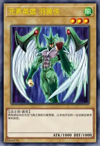 拥有操纵风在天空飞舞之翼的元素英雄。以来自天空的一击羽翼击破来审判邪恶。