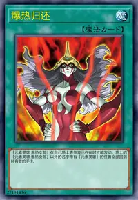 「元素英雄 爆热女郎」在自己场上表侧表示存在时才能发动。场上的「元素英雄 爆热女郎」以外的名字带有「元素英雄」的怪兽全部回到持有者的手卡。