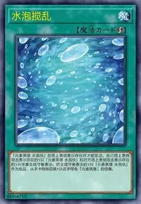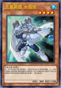 「元素英雄 水泡侠」在场上表侧表示存在时才能发动。自己场上表侧攻击表示存在的1只「元素英雄 水泡侠」和对方场上表侧攻击表示存在的1只怪兽变成守备表示。把变成守备表示的1只「元素英雄 水泡侠」作为祭品,从手卡特殊召唤1只名字带有「元素英雄」的怪兽。
