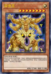 这张卡可以用1只名字带有「异虫」的爬虫类族怪兽解放表侧攻击表示上级召唤。可以把自己场上存在的1只名字带有「异虫」的爬虫类族怪兽解放,对方场上1张卡破坏。