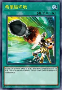 自己场上有名字带有「希望皇 霍普」的怪兽存在的场合才能发动。对方场上1只攻击力最低的怪兽破坏,给与对方基本分破坏的怪兽的攻击力数值的伤害。