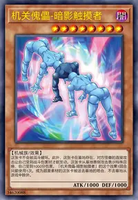 这张卡不会被战斗破坏。此外,这张卡在墓地存在,对方怪兽的直接攻击让自己受到战斗伤害时才能发动。这张卡从墓地表侧攻击表示特殊召唤,自己受到1000分伤害。「机关傀儡-暗影触摸者」的这个效果1回合只能使用1次。成为超量素材的这张卡被送去墓地的场合,不去墓地从游戏中除外。