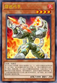 ①:这张卡召唤成功的场合发动。这个回合,自己在通常召唤外加上只有1次,自己主要阶段可以把1只「熔岩」怪兽召唤。