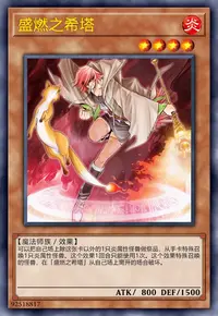 可以把自己场上除这张卡以外的1只炎属性怪兽做祭品,从手卡特殊召唤1只炎属性怪兽。这个效果1回合只能使用1次。这个效果特殊召唤的怪兽,在「盛燃之希塔」从自己场上离开的场合破坏。