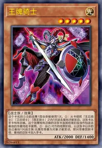 ①:从卡组把「王后骑士」「卫兵骑士」「国王骑士」之内1只送去墓地才能发动。这张卡从手卡特殊召唤。这个效果特殊召唤的这张卡直到结束阶段当作和送去墓地的怪兽同名卡使用。
