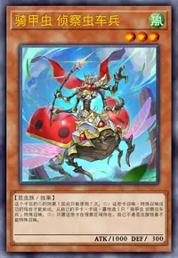 ①:这张卡召唤·特殊召唤成功的场合才能发动。从自己的手卡·卡组·墓地选1只「骑甲虫 侦察虫车兵」特殊召唤。