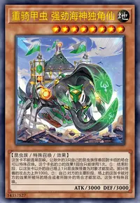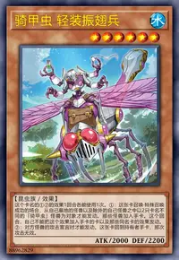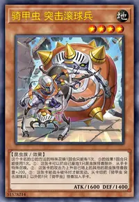 ①:在自己场上把1只「骑甲虫衍生物」(昆虫族·地·3星·攻/守1000)特殊召唤。那之后,自己场上有攻击力3000以上的昆虫族怪兽存在的场合,可以选场上1张魔法·陷阱卡破坏。