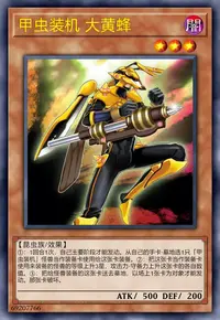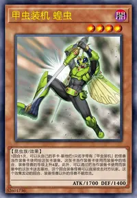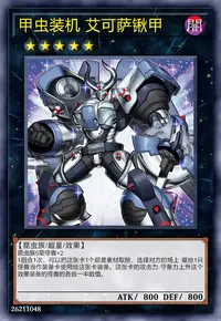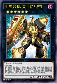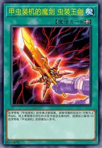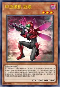 名字带有「甲虫装机」的怪兽才能装备。装备怪兽的攻击力·守备力上升800。场上表侧表示存在的这张卡被送去墓地时,选择自己墓地1只名字带有「甲虫装机」的怪兽加入手卡。