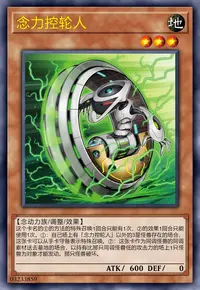 ①:自己场上有「念力控轮人」以外的3星怪兽存在的场合,这张卡可以从手卡守备表示特殊召唤。