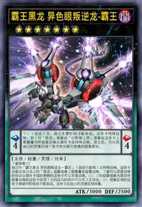 自己对「霸王黑龙 异色眼叛逆龙-霸王」1回合只能有1次特殊召唤。这张卡也能在自己场上的「叛逆」超量怪兽上面重叠来超量召唤,7星可以灵摆召唤的场合在额外卡组的表侧的这张卡可以灵摆召唤。
