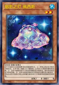 ①:把自己场上1只表侧表示的鱼族怪兽除外才能发动。原本卡名和为这张卡发动而除外的怪兽不同的1只「魊影」怪兽从自己的手卡·卡组·墓地·除外状态特殊召唤。这个效果特殊召唤的怪兽从场上离开的场合除外。