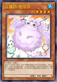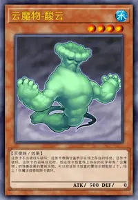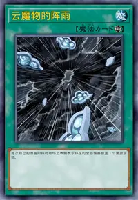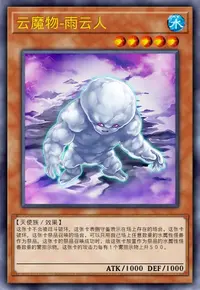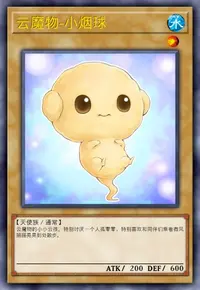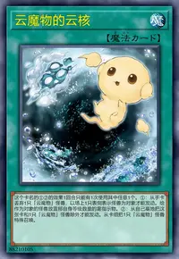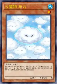 这张卡被战斗破坏送去墓地时,在自己场上把2只「云魔物衍生物」(天使族·水·1星·攻/守0)守备表示特殊召唤。这些衍生物不能作为名字带有「云魔物」的卡以外的祭品召唤的祭品。