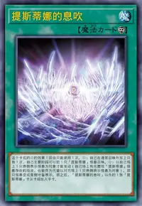 ②:以自己场上1只表侧表示怪兽为对象才能发动(自己场上有光属性「提斯蒂娜」怪兽存在的场合,也能作为代替以对方场上1只表侧表示怪兽为对象)。那只怪兽变成里侧守备表示。那之后,「提斯蒂娜的息吹」以外的1张「提斯蒂娜」卡从卡组加入手卡。