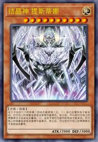 ①:自己主要阶段才能发动。从卡组把1只「提斯蒂娜」怪兽送去墓地。对方场上有表侧表示卡3张以上存在的场合,可以再从手卡·卡组把1只「结晶神 提斯蒂娜」特殊召唤。