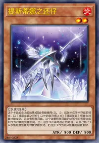 ①:这张卡在手卡存在的场合,以「提斯蒂娜之还仔」以外的自己场上1只「提斯蒂娜」怪兽为对象才能发动。这张卡特殊召唤。这个效果特殊召唤的这张卡的等级变成和作为对象的怪兽相同。