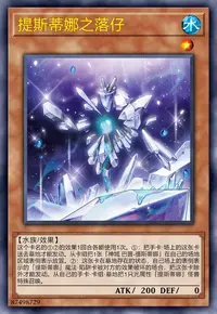 ①:从自己的手卡·墓地把1只「提斯蒂娜」怪兽守备表示特殊召唤。这个效果特殊召唤的怪兽在结束阶段回到手卡。