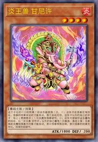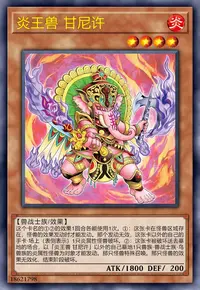 ②:这张卡被破坏送去墓地的场合,以「炎王兽 甘尼许」以外的自己墓地1只兽族·兽战士族·鸟兽族的炎属性怪兽为对象才能发动。那只怪兽特殊召唤。那只怪兽的效果无效化,结束阶段破坏。
