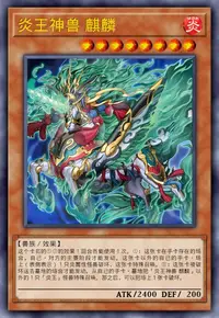 ②:这张卡被破坏送去墓地的场合才能发动。从自己的手卡·墓地把「炎王神兽 麒麟」以外的1只「炎王」怪兽特殊召唤。那之后,可以把场上1张卡破坏。