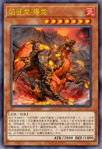 ①:把1只龙族或炎属性的怪兽和这张卡从手卡丢弃才能发动。从卡组把1只「焰征龙-爆龙」特殊召唤。这个效果特殊召唤的怪兽在这个回合不能攻击。