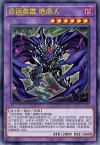 ①:自己的手卡·卡组的怪兽作为融合素材,把以「命运英雄」怪兽为融合素材的1只融合怪兽融合召唤。这个效果特殊召唤的怪兽在下个回合的结束阶段破坏。这张卡的发动后,直到回合结束时自己不是暗属性「英雄」怪兽不能特殊召唤。