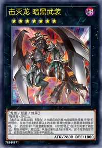 「击灭龙 暗黑武装」1回合1次也能在自己墓地的暗属性怪兽只有5只的场合,在自己场上的5星以上的龙族·暗属性怪兽上面重叠来超量召唤。