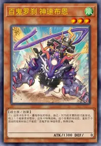①:这张卡在手卡·墓地存在的场合,自己·对方的主要阶段才能发动。场上1个超量素材取除,这张卡特殊召唤。这个效果的发动后,直到下个回合的结束时自己不能把「百鬼罗刹 神速布恩」特殊召唤。