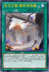 ①:从卡组把1张「灰灭之都 奥布西地暮」在自己或对方的场地区域表侧表示放置。那之后,对方的场地区域有卡存在的场合,可以从卡组把1只5星以上的炎族·暗属性怪兽加入手卡。这张卡的发动后,直到回合结束时自己不是炎族怪兽不能从卡组·额外卡组特殊召唤。