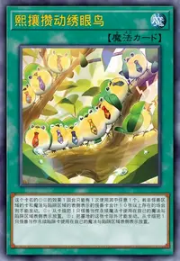 ①:把自己的手卡·场上(表侧表示)1只鸟兽族怪兽解放才能发动。等级和解放的怪兽相同的1只鸟兽族怪兽从卡组加入手卡。