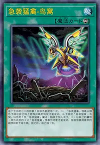 ②:自己场上没有怪兽存在的场合,以包含这张卡的自己墓地2只4星以下的「急袭猛禽」怪兽为对象才能发动。那些怪兽守备表示特殊召唤。