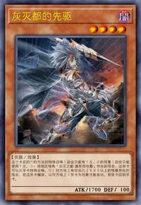 ①:让「灰灭的复燃」以外的自己的墓地·除外状态的1张「灰灭」卡回到卡组最下面,以对方场上1只效果怪兽为对象才能发动。那只怪兽的效果直到回合结束时无效。