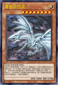 这张卡不能通常召唤。把手卡1只「青眼白龙」给对方观看的场合可以特殊召唤。这个方法的「青眼亚白龙」的特殊召唤1回合只能有1次。