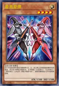 ①:从卡组把「王后骑士」「卫兵骑士」「国王骑士」之内1只送去墓地才能发动。这张卡从手卡特殊召唤。这个效果特殊召唤的这张卡直到结束阶段当作和送去墓地的怪兽同名卡使用。