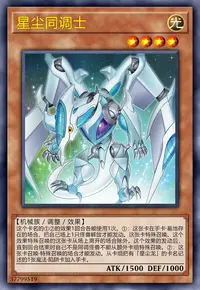 ②:自己·对方的主要阶段,把这张卡解放才能发动。从额外卡组把1只「星尘龙」当作同调召唤作特殊召唤。那之后,进行1只同调怪兽的同调召唤。这个效果同调召唤的怪兽在这个回合不受对方发动的效果影响。