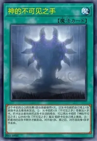 ①:从卡组把1只「不可见之手」怪兽加入手卡。把卡送去墓地来把这张卡发动的场合,可以再从卡组把「神的不可见之手」以外的1张「不可见之手」魔法·陷阱卡在自己场上盖放。