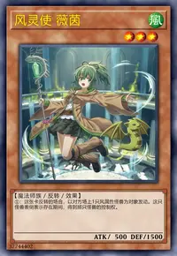 ①:从手卡把这张卡和1只风属性怪兽丢弃才能发动。从卡组把「风灵媒师 薇茵」以外的1只守备力1500以下的风属性怪兽加入手卡。这个效果的发动后,直到回合结束时自己不能把风属性以外的怪兽的效果发动。