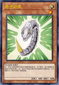 ②:这张卡被战斗破坏送去墓地时才能发动。从卡组把1只「电子幼体」特殊召唤。