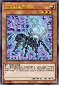 ①:这张卡在手卡·墓地存在的场合,从手卡以及自己场上的表侧表示怪兽之中把2只电子界族怪兽除外才能发动。这张卡特殊召唤。这个效果特殊召唤的这张卡的攻击力变成一半。