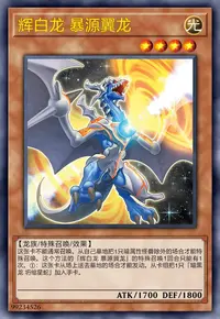 这张卡不能通常召唤。从自己墓地把1只暗属性怪兽除外的场合才能特殊召唤。这个方法的「辉白龙 暴源翼龙」的特殊召唤1回合只能有1次。