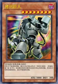 这张卡不能通常召唤。通过在自己场上把2只「拷问衍生物」(恶魔族·暗·1星·攻/守0)攻击表示特殊召唤可以在对方场上特殊召唤。把这张卡特殊召唤的回合,自己不能通常召唤。