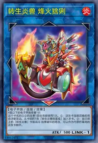 ①:把这张卡1个超量素材取除才能发动。从卡组把1只「转生炎兽」怪兽守备表示特殊召唤。这个效果的发动后,直到回合结束时自己不能把炎属性以外的怪兽的效果发动。