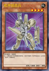 ①:只要这张卡在怪兽区域存在,双方不能向「机甲狙击兵」以外的「机甲」怪兽攻击。