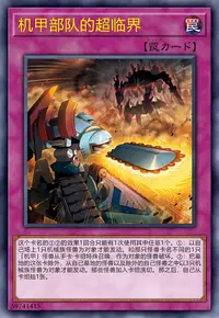 ①:把这张卡解放才能发动。从手卡·卡组把「机甲部队·超大变形」以外的1只「机甲」怪兽特殊召唤。