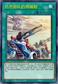 ●从手卡丢弃1张「机甲」卡才能发动。从卡组把「机甲部队的再编制」以外的2张「机甲」卡加入手卡(同名卡最多1张)。