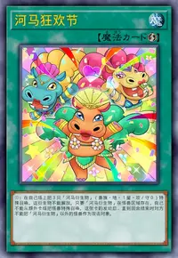 ①:在自己场上把3只「河马衍生物」(兽族·地·1星·攻/守0)特殊召唤。这衍生物不能解放。只要「河马衍生物」在怪兽区域存在,自己不能从额外卡组把怪兽特殊召唤。这张卡的发动后,直到回合结束时对方不能把「河马衍生物」以外的怪兽作为攻击对象。