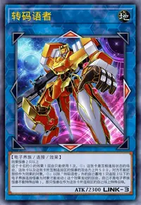 ②:以除「转码语者」外的自己墓地1只连接3以下的电子界族连接怪兽为对象才能发动(这个效果发动的回合,自己不是电子界族怪兽不能特殊召唤)。那只怪兽在作为这张卡所连接区的自己场上特殊召唤。