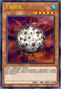 这张卡攻击守备表示怪兽时,若攻击力超过那个守备力,给与对方基本分那个数值的战斗伤害。这张卡被战斗破坏的场合,从自己卡组把1只「千眼卵鱼」或「母脑鱼」加入手卡。