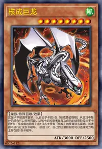 这张卡的控制者在每次自己的结束阶段从手卡把1张「核成兽的钢核」送去墓地或把手卡1只不死族怪兽给对方观看。或者都不进行让这张卡破坏。自己场上存在的名字带有「核成」的怪兽1只被战斗或者卡的效果破坏的场合,可以作为代替把自己墓地存在的1只名字带有「核成」的怪兽从游戏中除外。