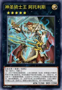 ①:以包含「阿托利斯」怪兽以及「兰斯洛特」怪兽各1只的自己墓地5只「圣骑士」怪兽为对象才能发动。那些怪兽除外,场上的卡全部破坏。