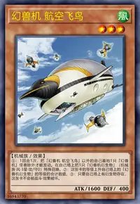 ①:1回合1次,把「幻兽机 航空飞鸟」以外的自己墓地1只「幻兽机」怪兽除外才能发动。在自己场上把1只「幻兽机衍生物」(机械族·风·3星·攻/守0)特殊召唤。